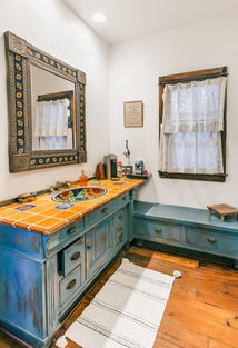 Indulge in celestial luxury at El Sueno's Moonridge Suite. Wood floors and beamed ceilings frame exquisite furnishings, antique area rugs, and captivating artwork. The intimate main suite, with a king bed, accommodates two, while an adjacent side suite offers a sumptuous escape for an additional duo.